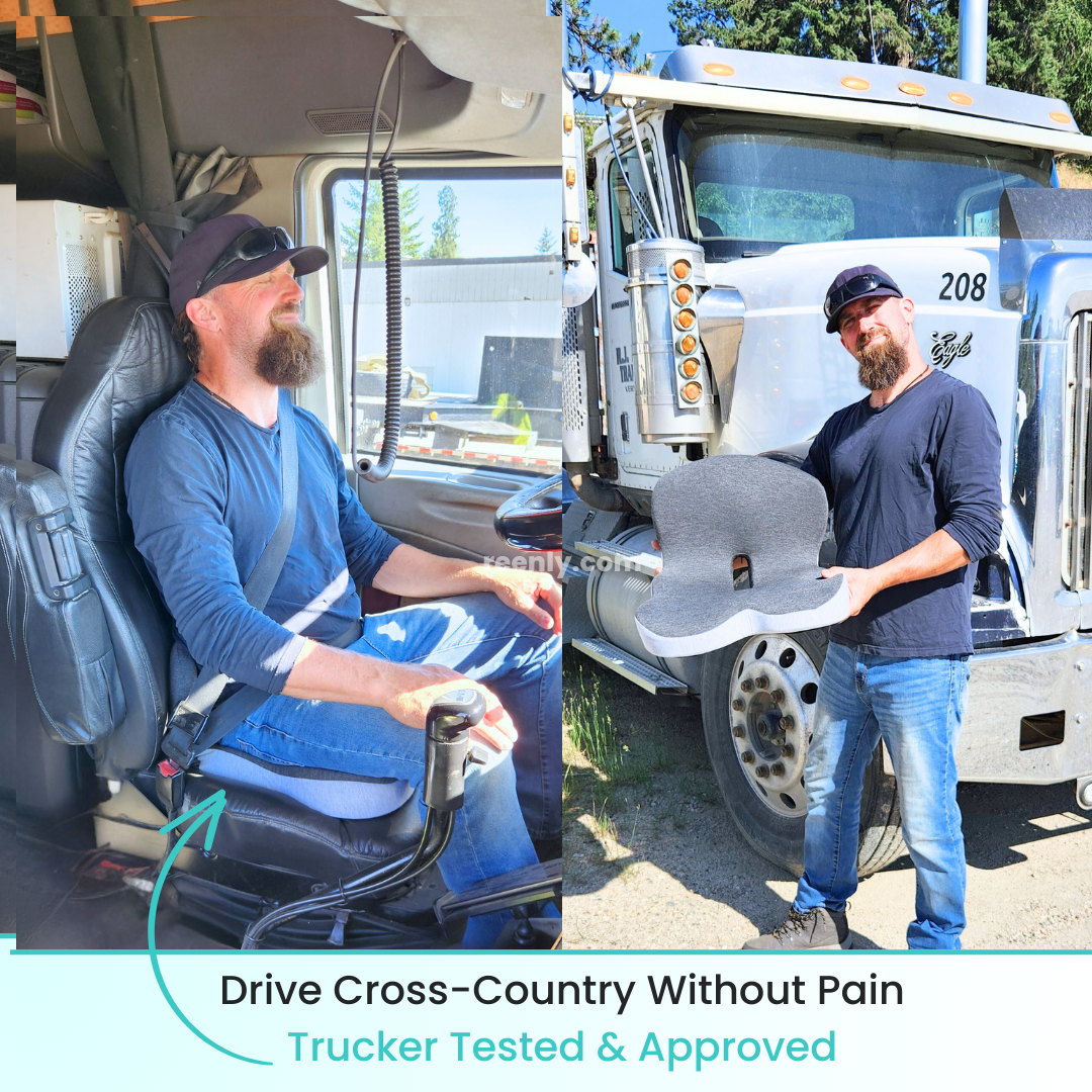 Car and truck seats are designed for durability, not your body. Their bucket shape forces your hips to sag and your thighs into the seat,cutting off circulation and leaving your legs restless.Over time, this posture collapse irritates nerves and leaves you aching long after the engine’s off.
