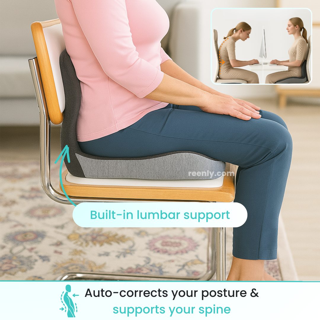 Most chairs punish your body within 30 minutes.Your hips tilt, your spine collapses, and pressure builds on your tailbone and sciatic nerve.That’s why long drives, workdays, or even dinner at the table can leave you sore, stiff, or numb.